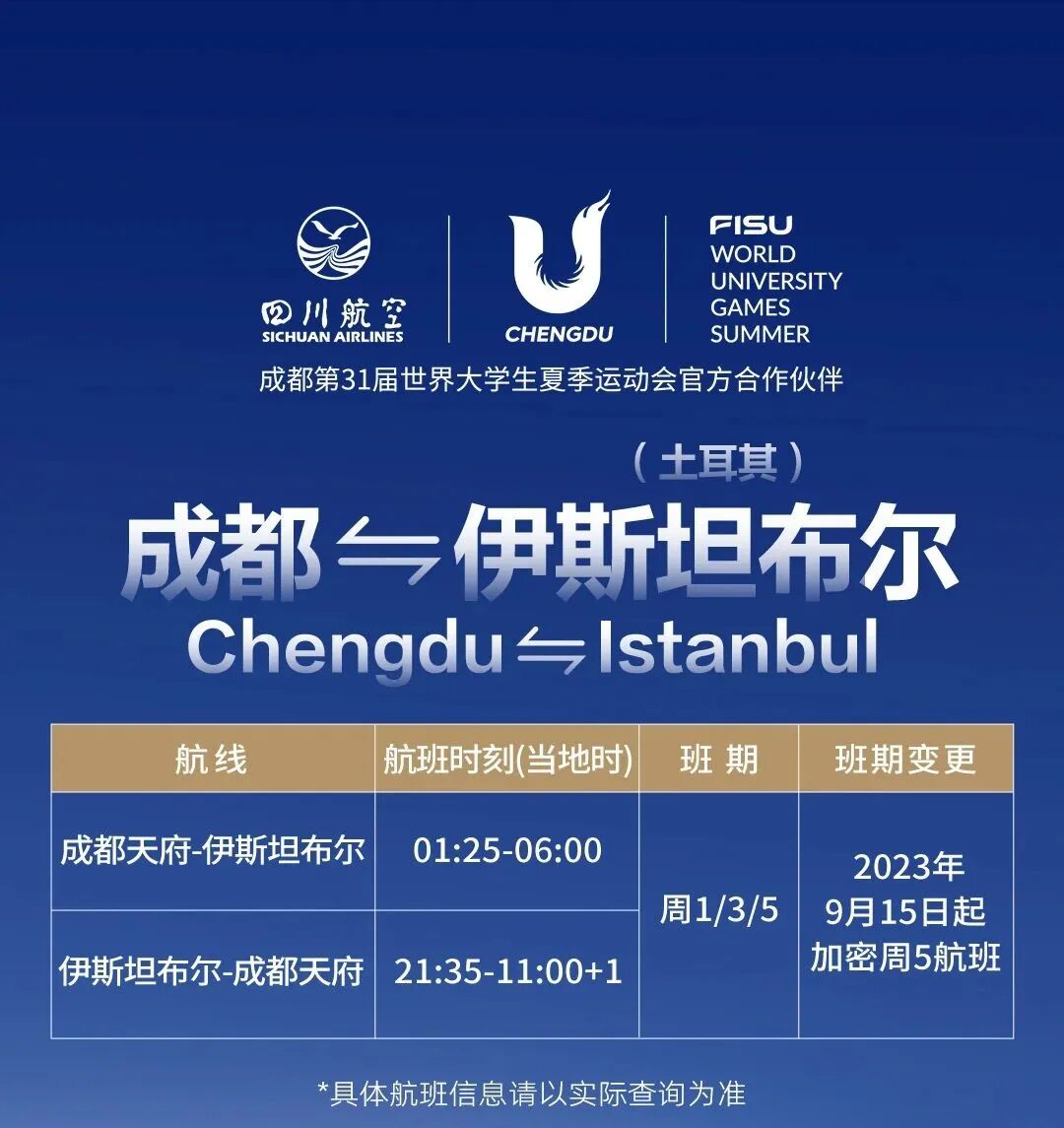 9月15日起,成都天府=伊斯坦布尔航线增班,每周1/3/5三班执飞!