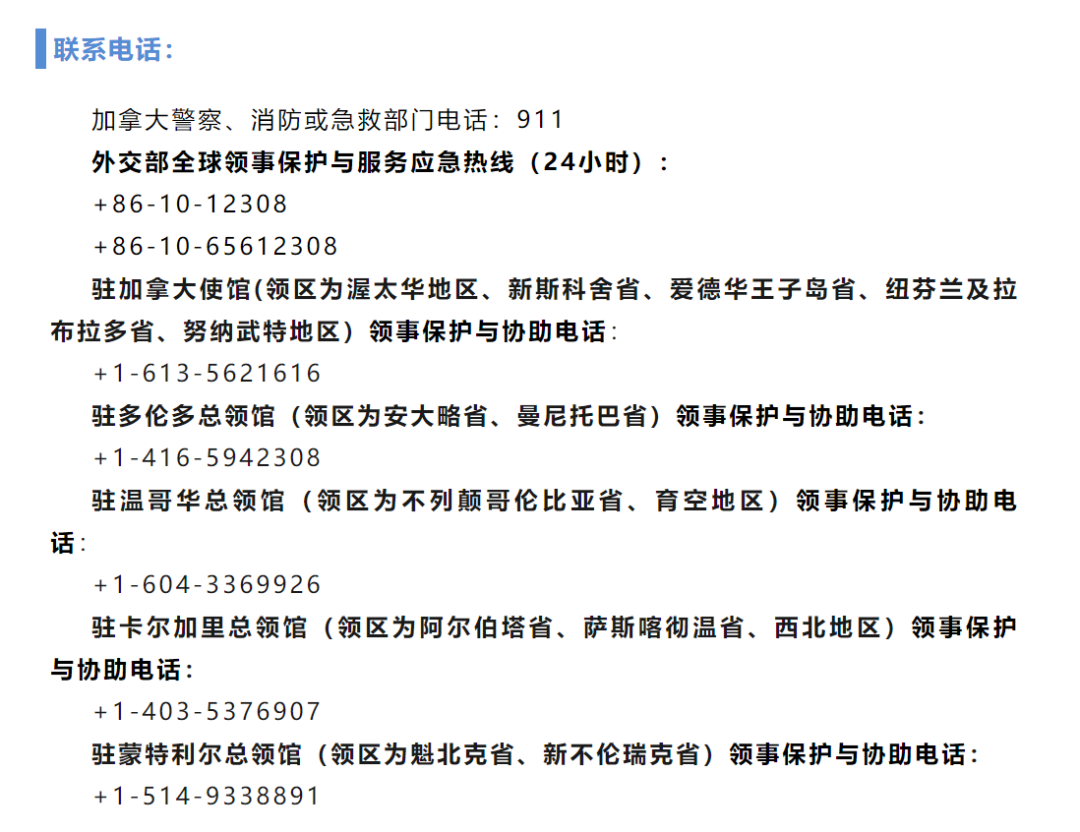 驻加拿大使领馆提醒在加中国公民密切关注火情动态,通过官方渠道及时获取最新信息,避免前往野火波及区域,提高自我保护意识,加强自身安全防范。如处于受野火影响的区域,请遵守当地政府发布的有关指令,及时安全有序撤离。