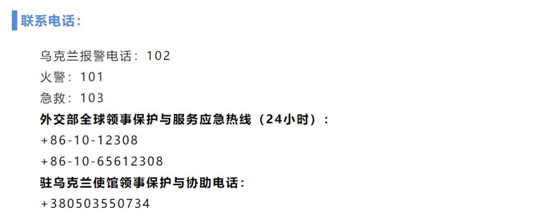 日前,乌克兰宣布将乌克兰的国家战时状态自2023年8月18日延长至2023年11月15日。考虑到乌当前安全形势仍然存在高风险,驻乌克兰使馆提醒中国公民暂勿赴乌,已自乌撤离至第三国人员暂勿返乌,少数自愿在乌境内停留的中国公民持续做好防空避险和应急物资储备。