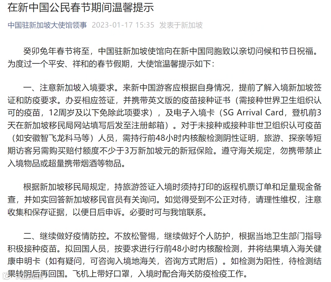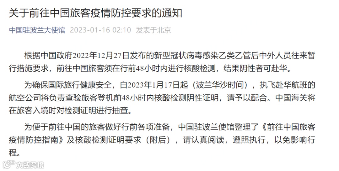 · 中国驻各国使馆发布关于前往中国旅客疫情防控要求的通知