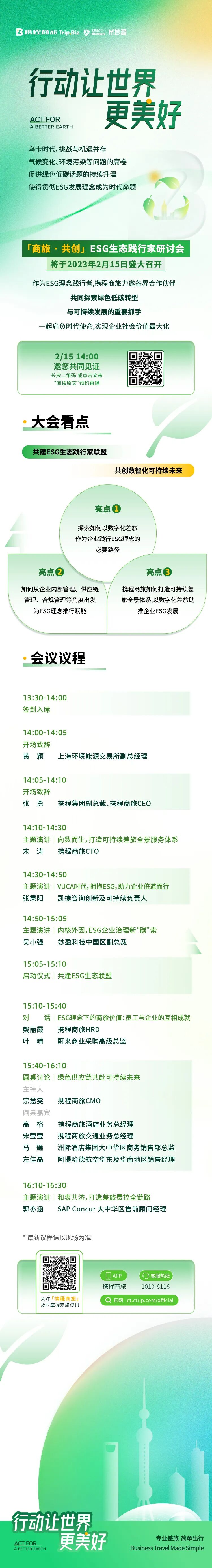 行动,让世界更美好 | 携程商旅「商旅·共创」ESG生态践行家研讨会邀您共创数智化可持续未来