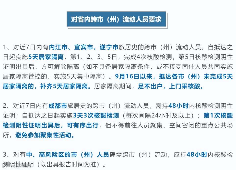 五、自2022年9月4日起,对凡7日内有本土疫情的地级市(地区、自治州、盟等,详见附件)旅居史的入(返)琼人员,登机(船)前查验48小时核酸阴性证明。入琼后在关口分别开展1次抗原检测和1次核酸检测,抗原结果阴性可通行,无需等待核酸检测结果。抵琼后第一时间向所在社区、宾馆报备,落实三天两检。如与风险区、重点涉疫区有重合,则按照较为严格的管控措施落实。