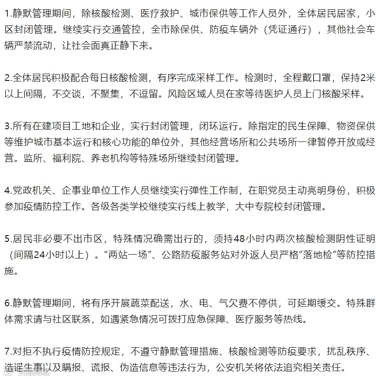 按照国家、省、市防疫工作有关要求,经专家分析研判,决定自2022年9月21日早5时起,延长市城区静默管理7天。