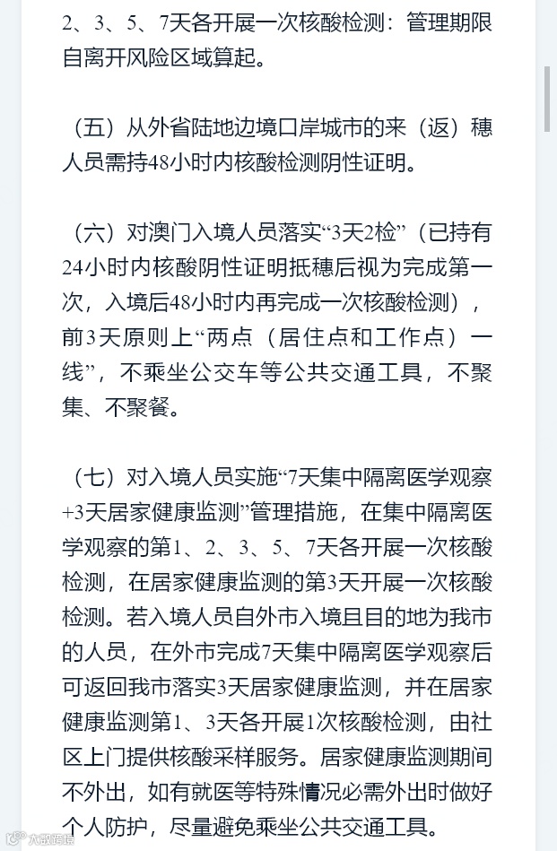 倡导市民非必要不离赤,确需离赤的,须持48小时内两次核酸检测阴性证明(间隔24小时)。