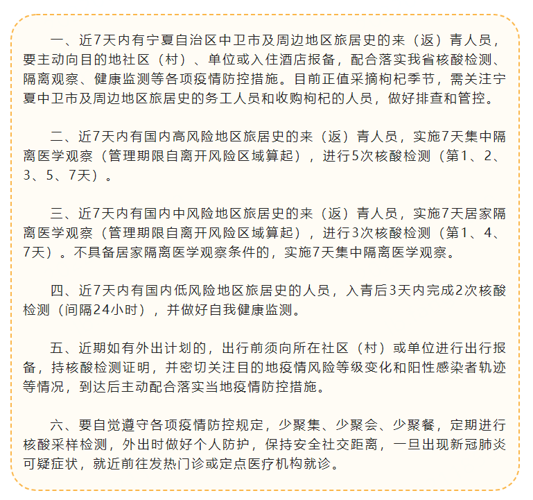 一、倡导广大群众减少跨地市出行,避免人群大范围流动引发的疫情传播扩散风险。