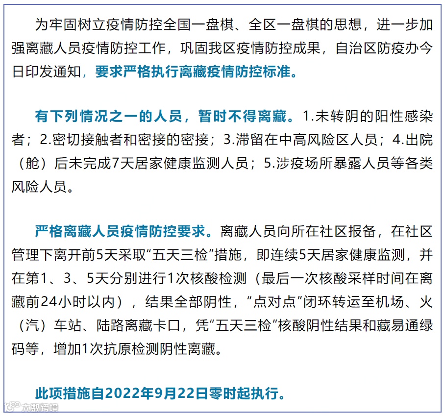 1.西藏自治区全域来(返)郑人员实施7天集中隔离。