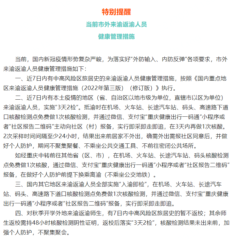 从境外返回且在第一入境点解除7天集中隔离医学观察的来(返)赤人员,在提前登记、报备的基础上,要“手递手”闭环转运至居住地,街道(乡镇)、社区(村嘎查)组织专人负责监督落实3天居家健康监测、核酸检测等相关措施。