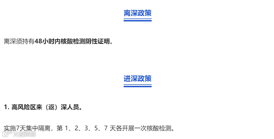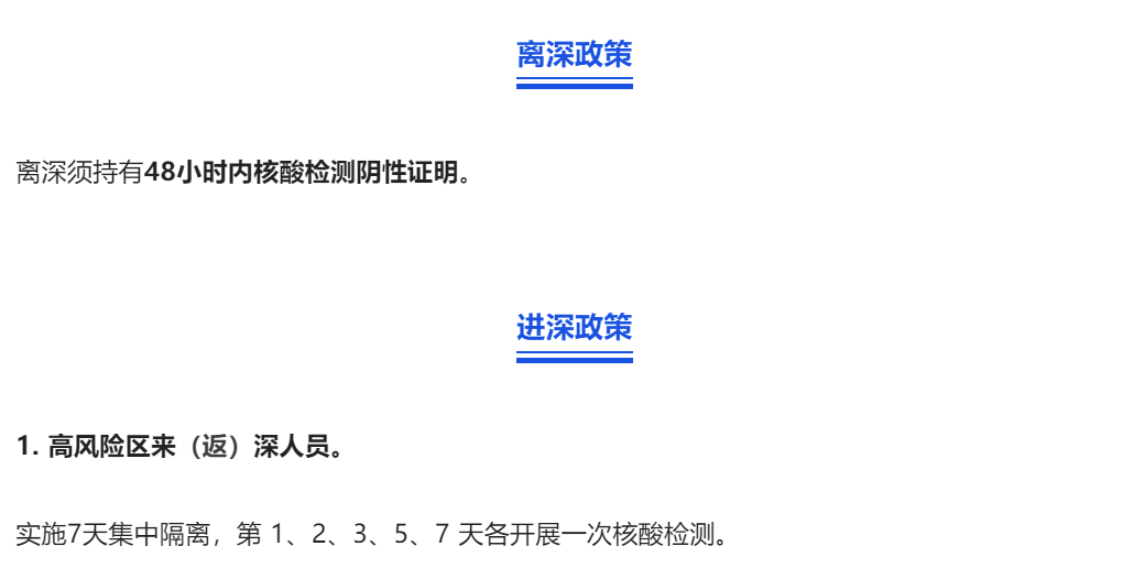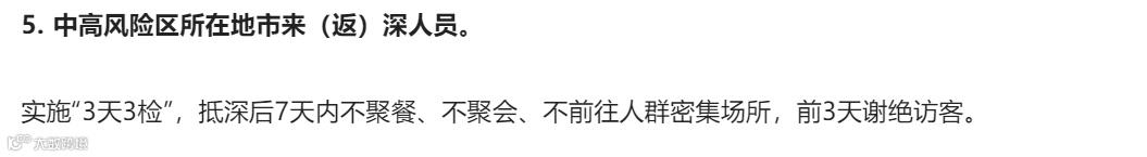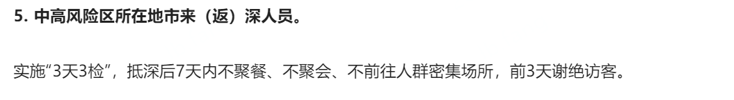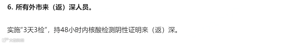 深圳:所有外市来返深人员,实施“3天3检”,持48小时核酸阴性证明。