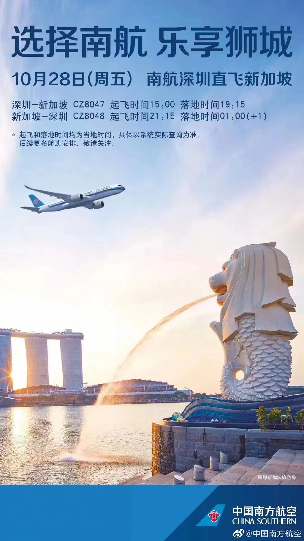 厦航于10月16日恢复了停航近6年的杭州-新加坡航线;