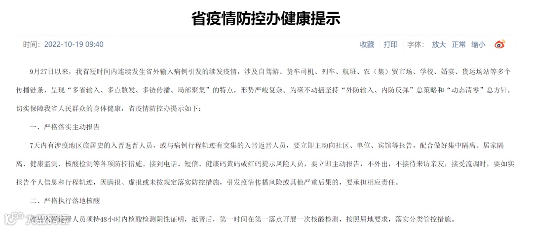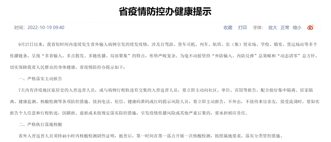 山西:持48小时核酸阴性证明,落地检后落实分类管控