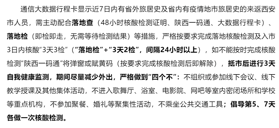陕西西安:西安再发疫情疾控提示,实施落地检+三天两检