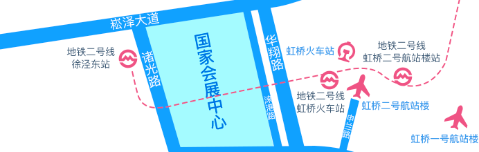 1、进博会展馆距虹桥机场→打车车程约5分钟