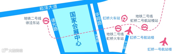 1、进博会展馆距上海虹桥火车站→打车车程约10分钟