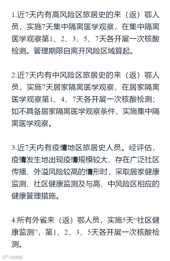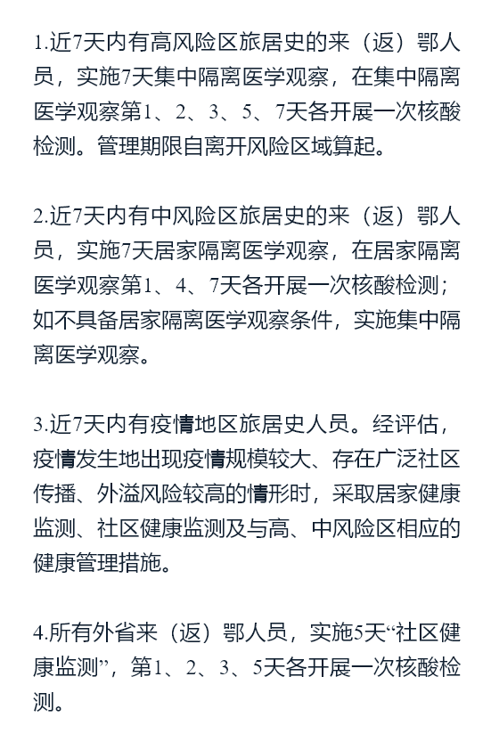 近期,全国部分地区防控政策,也有部分地区防疫政策暂未更新变化。广州、沈阳、武汉、锡林郭勒等地加强疫情防控措施,其中沈阳实行“五天五检”,武汉实行“五天四检”,内蒙古锡林郭勒实行静默管理。