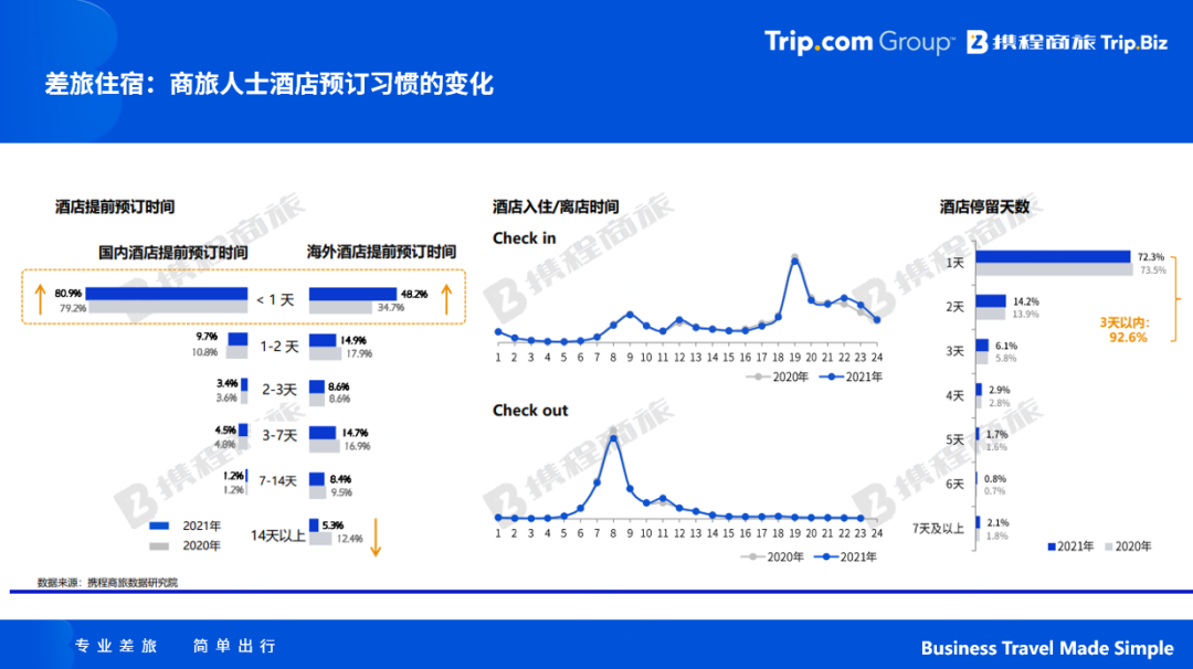 除了预订行为习惯外,差旅人士住宿预订的关注点也同样发生了改变。根据携程商旅发布的《2021-2022年中国商旅管理市场白皮书》,商旅人士在选择差旅酒店时,从最初的满足异地过夜需求,转变为注重住宿品质,从而更好地寻求工作和生活的融合,中高端酒店的需求随之增加。