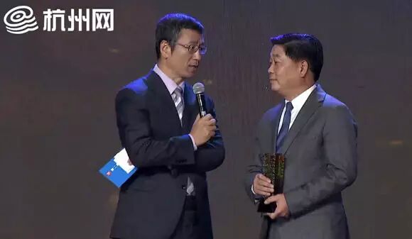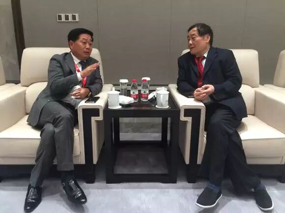 (颁奖结束后,喻渭蛟与娃哈哈集团董事长宗庆后亲切交谈)