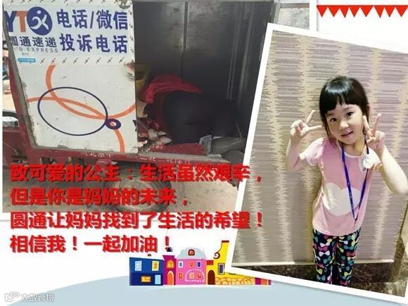 故事的主人公叫王美。一名离异的母亲,独自带着一个女儿快乐的生活,2014年11月加入圆通速递山东省海阳加盟公司,成为一名最辛苦的一线业务员。初次知道这个人,是她的同事给笔者发了一张照片,蜷缩在送件的三轮车厢里休息,这张照片估计是王美在休息的时候被偷偷拍下来的。看到照片时,其实还以为是一名男同志,概念中以为只有男同志才会如此不拘小节。当天,视频连线了海阳加盟公司工作人员,没想到是一名活泼开朗的大姐凑了过来,穿着整齐的工装,带着一副眼镜,虽然给人的第一感觉就是很爽朗,但是着实不能把她跟睡在车厢的照片联系在一起。