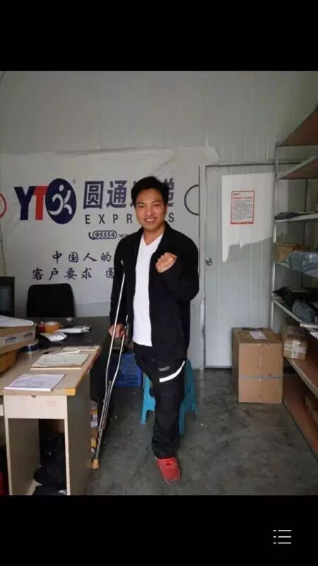 第一次遇见李洪军是在圆通集团大楼里,走在他背后的我一眼就认出了这个圆通网红,这个曾经感动过无数人、给他们带去正能量的背影。李洪军走得很快,似乎已经很习惯一条腿加拐杖的生活。当时笔者并没有第一时间与他打招呼,怕打扰到他,打扰他平静的生活。