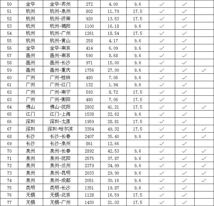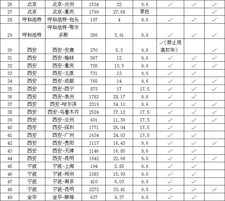 2)车辆只允许使用9.6M、16.5M以上,不允许使用6.8M、12.5M、13.5M、14.5M车型;