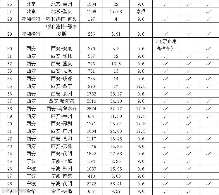 1)只允许使用厢式车型。(部分特殊地区,9.6M可使用高栏车);