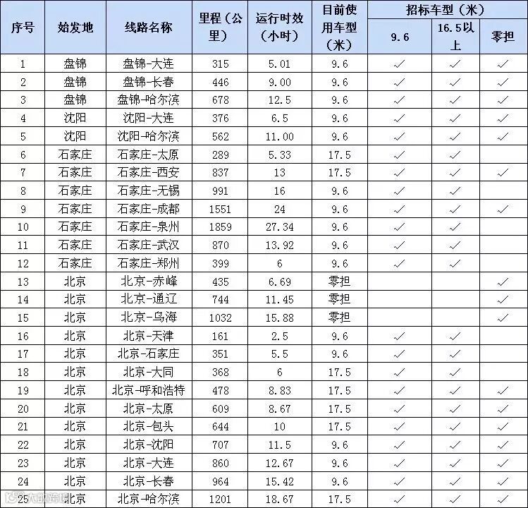 备注:承运商根据自身情况从《线路明细表》中选取线路进行报价,但必须根据线路车型需求完整报价(例:线路中有9.6米车型、16.5米以上车型、零担价格打“√”,需三种类型全部报价,否则视为无效)