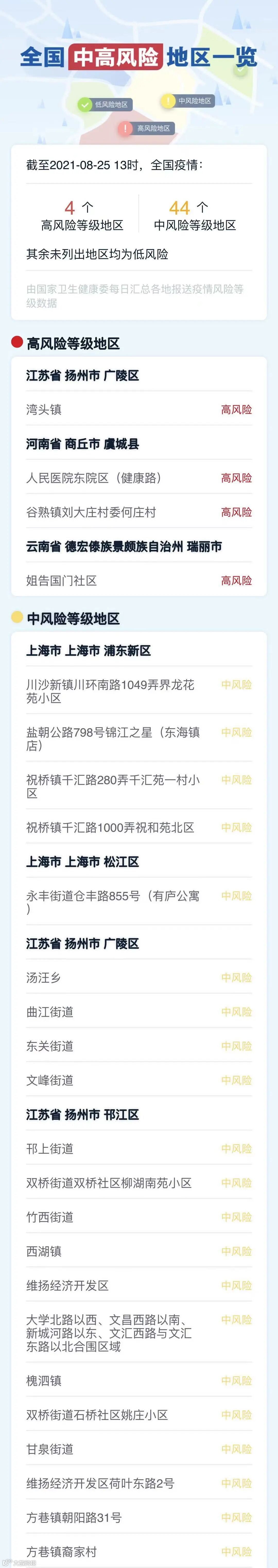 8月24日0—24时,31个省(自治区、直辖市)和新疆生产建设兵团报告新增本土确诊病例4例(上海2例,江苏1例,云南1例)。(来源:央视新闻)