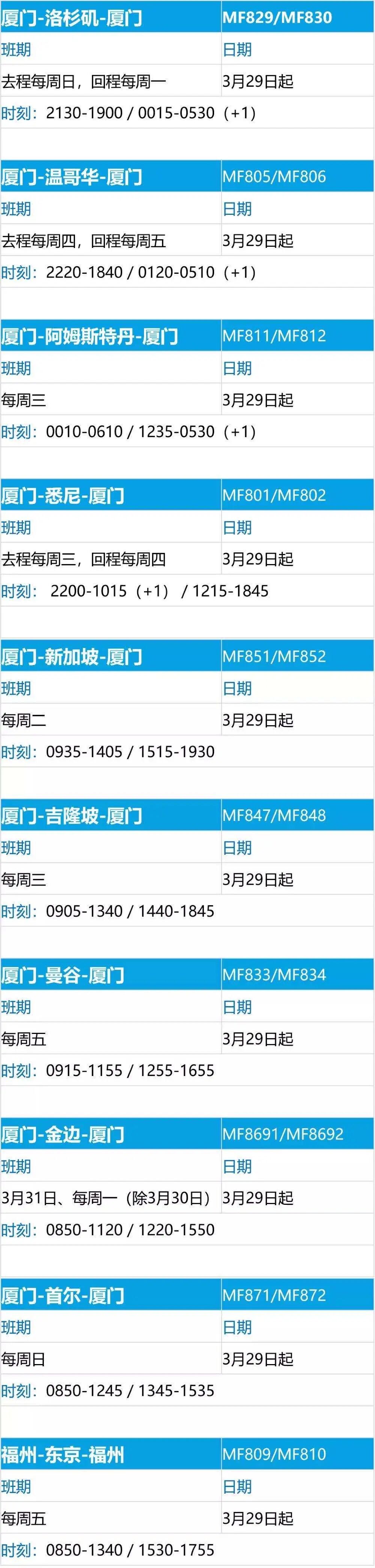 近期厦航国际及地区航班计划如下图所示。(航班计划实时更新,请以航司官方最信消息为准。)