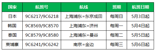 春秋航空:春秋航空5月国际航班运行计划安排如下: