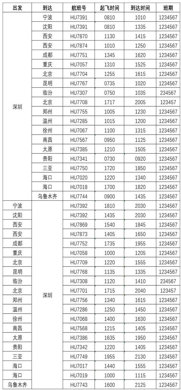 据民航资源网消息,目前海南航空恢复深圳至17个城市航班。