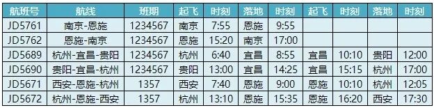 3月29日-5月2日,南京=十堰,每周一、三、五、七执飞;