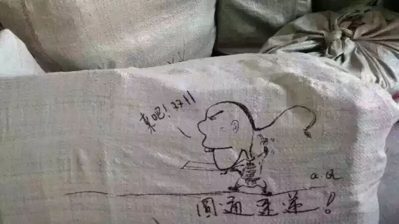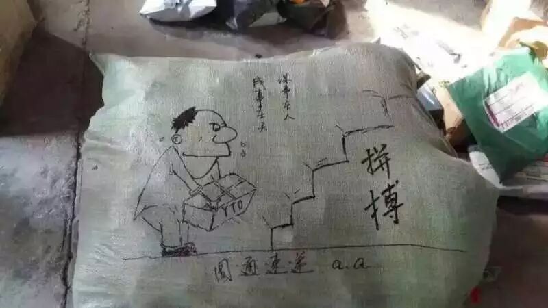 导读:近日小编在朋友圈中看见一位圆通快递小哥在编织袋上作画,突然觉得每个快递小哥都是潜力股,要好好珍惜!你身边有这