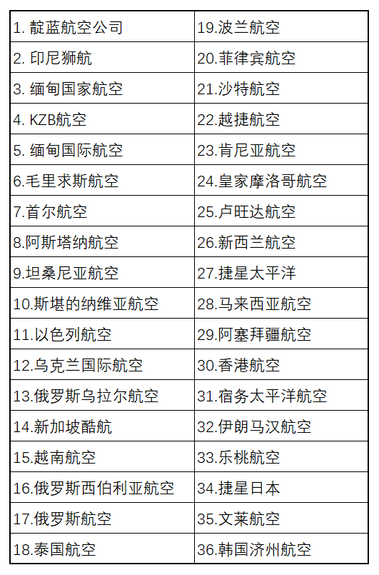 以下航司宣布暂时全部或