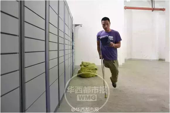 8月20日,华西都市报记者根据网友提供的信息,在成都龙泉驿区怡和新城C区见到这位独腿快递员。他叫李洪军,17岁时因为意外失去右腿,胯部以下全部截肢。2012年,李洪军进入快递行业,直到现在,他都每天“独行”在怡和新城,一个人平均要送100件包裹。