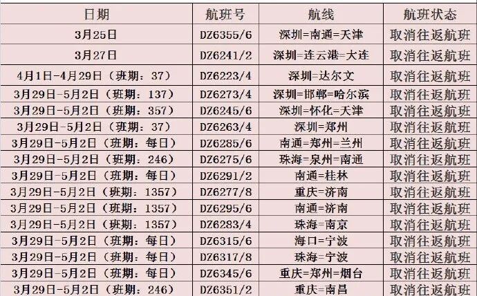 2. 3月29日~4月24日调整的航班具体信息,包含未受影响的航班信息。