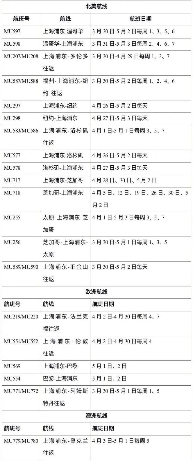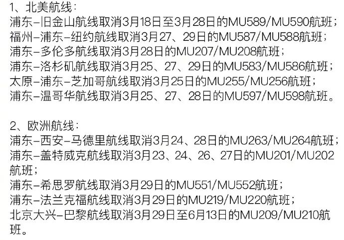 中国东方航空:东航官网3月25日宣布取消部分国际航班: