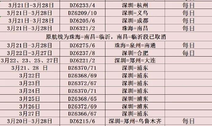 东海航空:3月24日,东海航空微博通知取消以下航空
