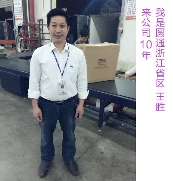 我是王胜,四川人,只身一人来到圆通速递公司。当时公司设在下沙小学当时环境不好但是我还年轻,年轻吃点苦怕什么,我咬牙坚持了下来。时过境迁,我们来到了萧山区的场地。十年,圆通的变化让人瞩目,快的让我来不及眨眼。我相信圆通,我依靠圆通,我愿与圆通共成长。希望圆通可以以巨人的姿态走向世界,像新出的太阳,将光辉洒向世界的每一个角落。圆通祝福你!