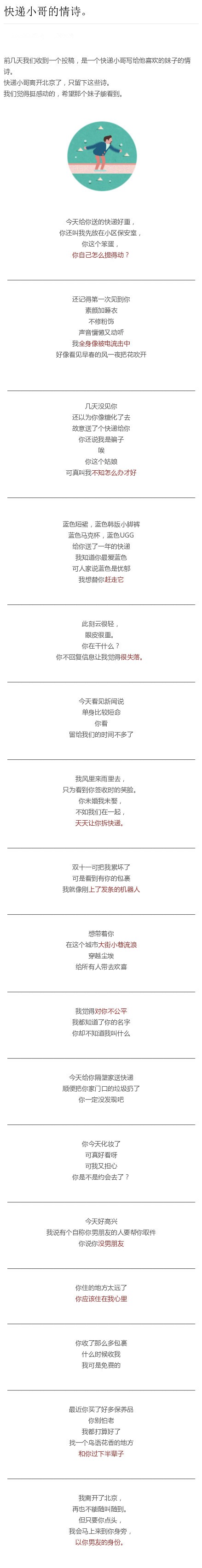您有一封来自快递小哥的情诗
