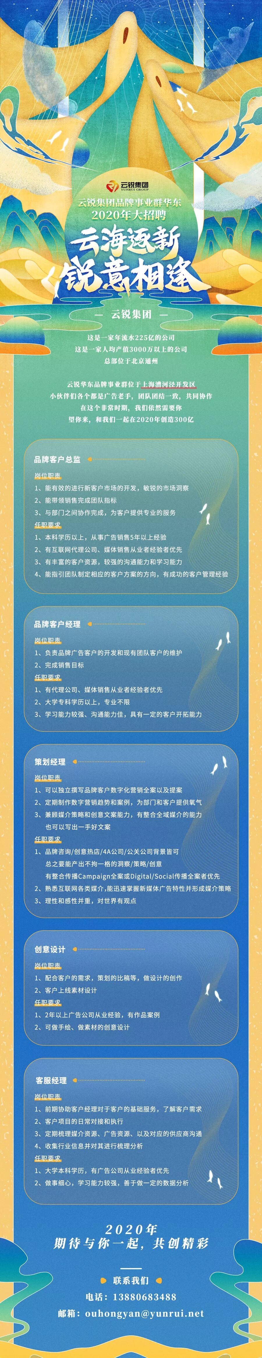 云锐集团品牌事业群华东2020年大招聘已经启动啦!
