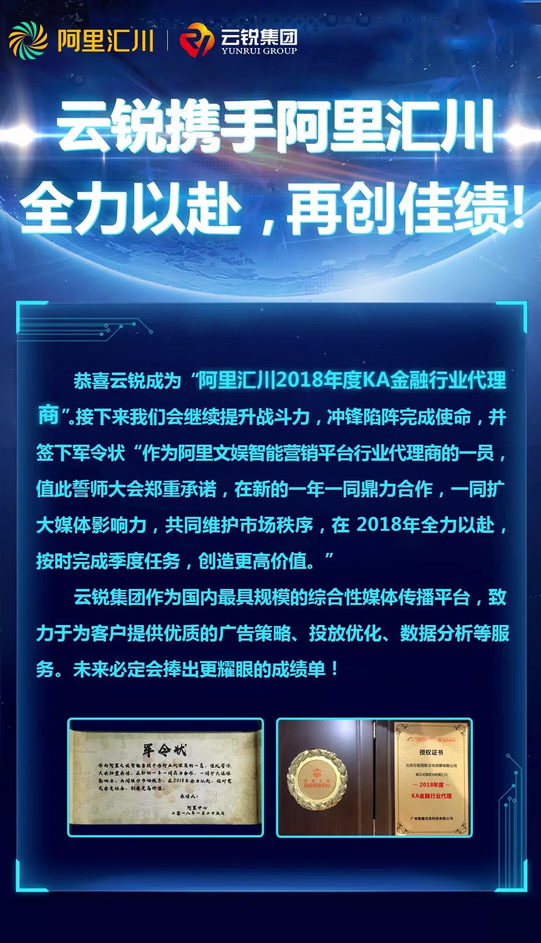 恭喜云锐成为阿里汇川2018年度KA金融行业代理商!