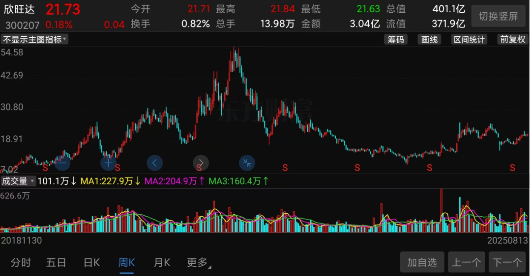 (欣旺达股价走势截图)