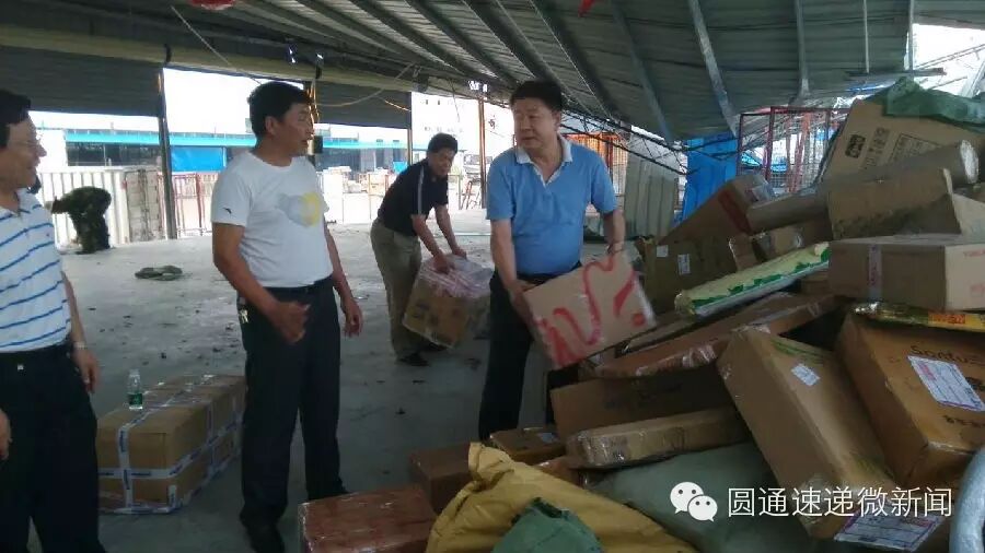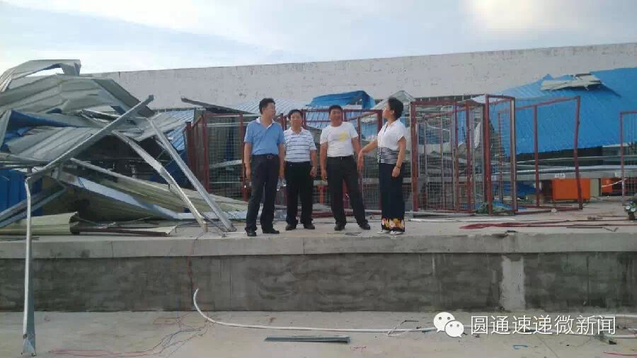 2014年7月18日,圆通速递海口转运中心因受超强台风“威马逊”影响,导致中心操作场地坍塌。在海南区域全体员工的努力下,海口转运中心在台风过后次日便恢复生产。海南省邮政管理局吴铁砚局长得知消息后,第一时间赶往圆通海口转运中心,视察中心受灾情况,对圆通海口转运中心表示慰问。