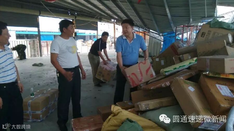 图为吴铁砚局长在海口转运中心现场传递包裹