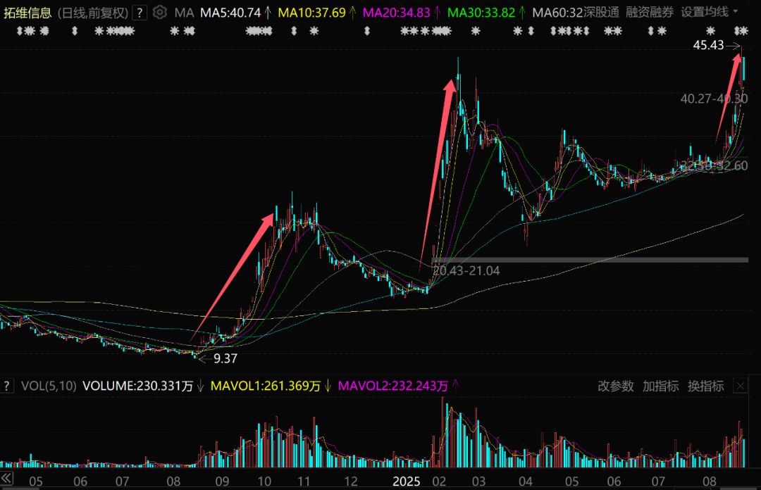 第二次大涨是在2025年初,当DeepSeek横空出世后,拓维信息与华为进一步适配DeepSeek-R1/V3大模型,推动兆瀚系列AI服务器成为国产算力基础设施的标杆。