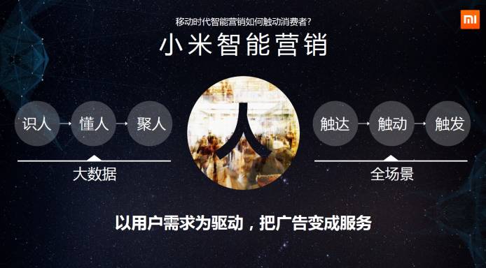 那么,回到主题,移动时代,智能营销如何触动消费者?陈高铭指出,小米智能营销体系能够提供解决方案。小米大数据营销能帮助广告主“识人、懂人、聚人”,而小米全场景营销则能帮助广告主“触达、触动、触发”,以用户需求为驱动,和用户走心,把广告变成服务。