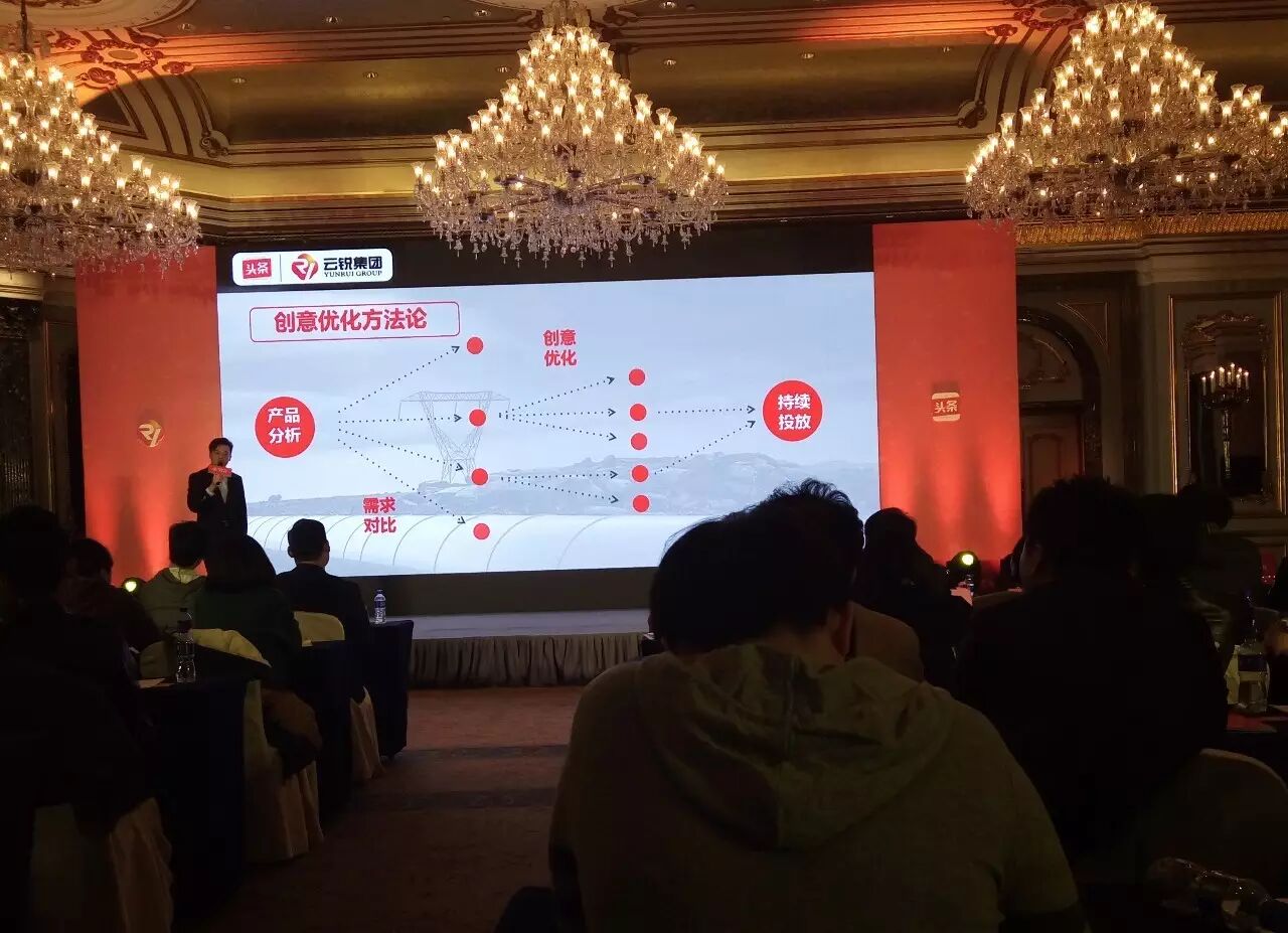 云锐集团今日头条事业部运营总监王勃先生发表讲话,他分享了自己的广告投放思路,以及在运营方面的独特见解。分享过程中他详细的介绍了云锐集团的发展及现状,以及云锐与一些媒体的广告合作及2016年的业绩呈现。