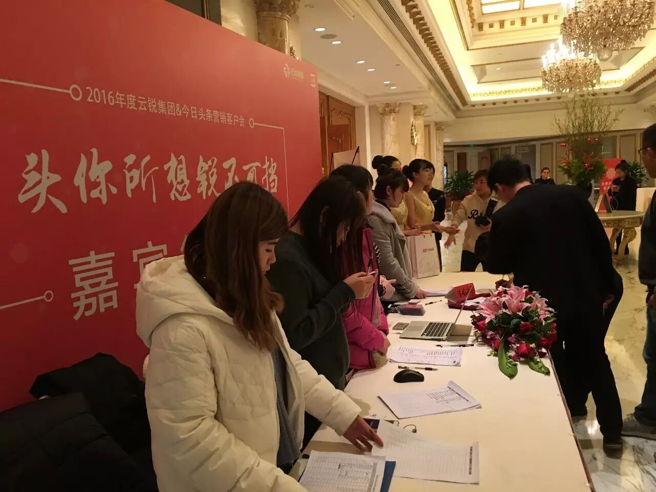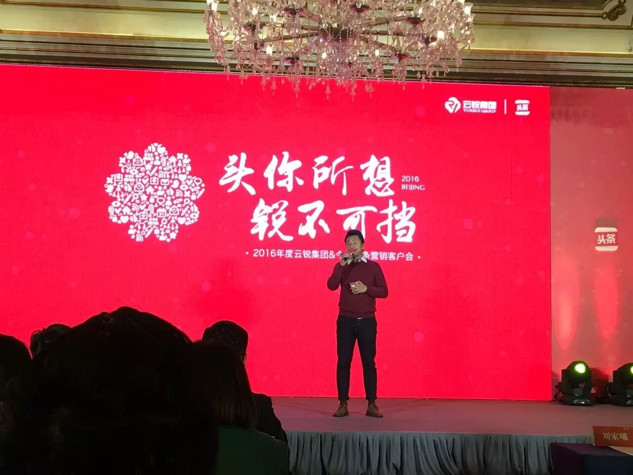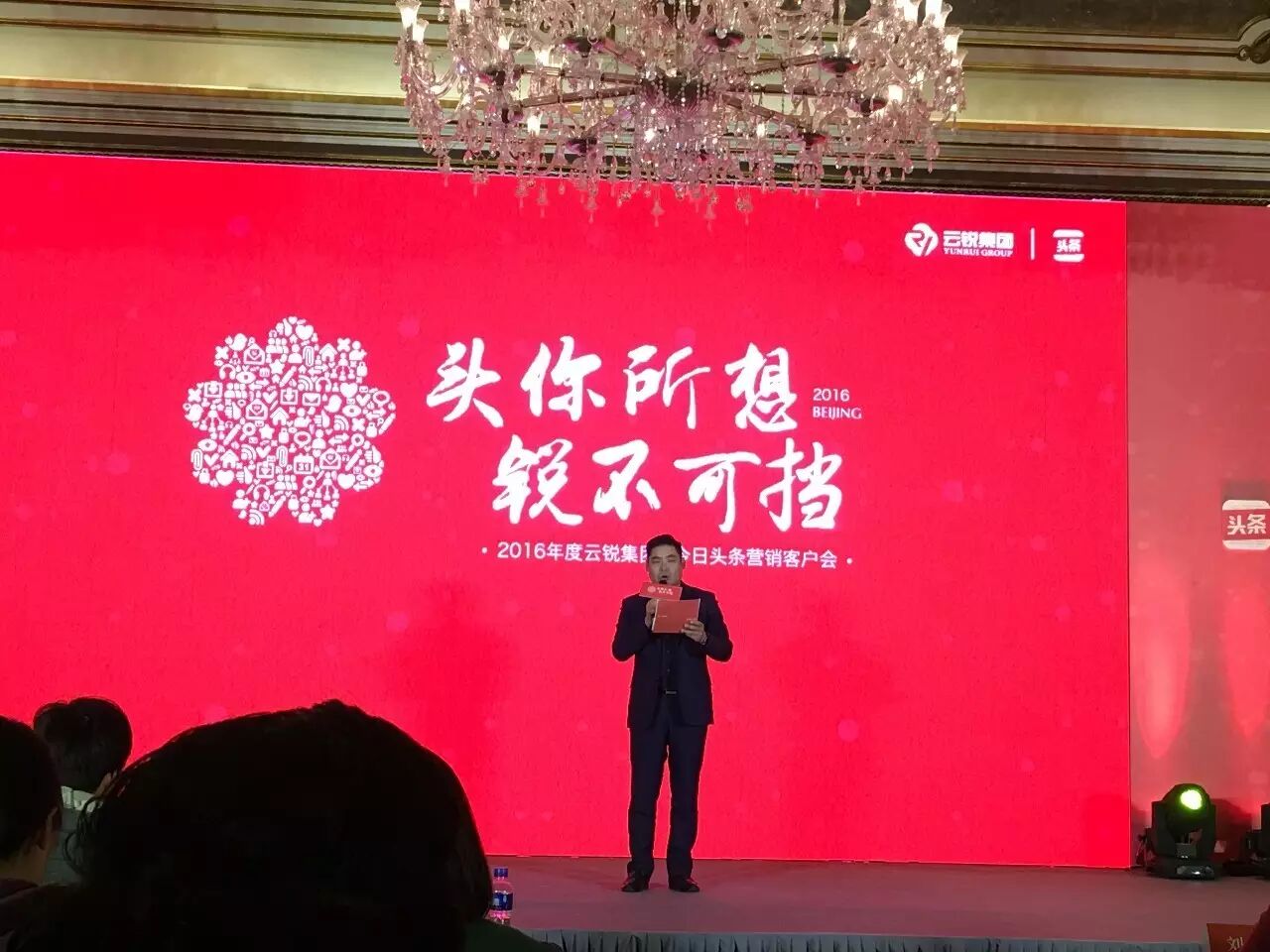 2016年12月13日,由今日头条主办、云锐集团承办的“头你所想·锐不可挡”2016年度云锐集团&今日头条营销客户会专场盛会在京举办。今日头条全国渠道总监卜丽军先生、华北渠道销售经理刘家曦先生、华北运营总监刘佳慧女士、云锐集团副总裁任杭东先生、营销中心副总经理阎丽女士、今日头条事业部运营总监王勃先生,以及来自全国各地100多位互联网行业精英共同参加了此次会议。本次年度盛会,就行业的生存现状、未来的发展方向及目标等话题展开对话。