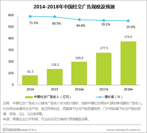 行业现状:2015年中国社交广告规模为138.2亿元,企业愈发重视社交网络营销