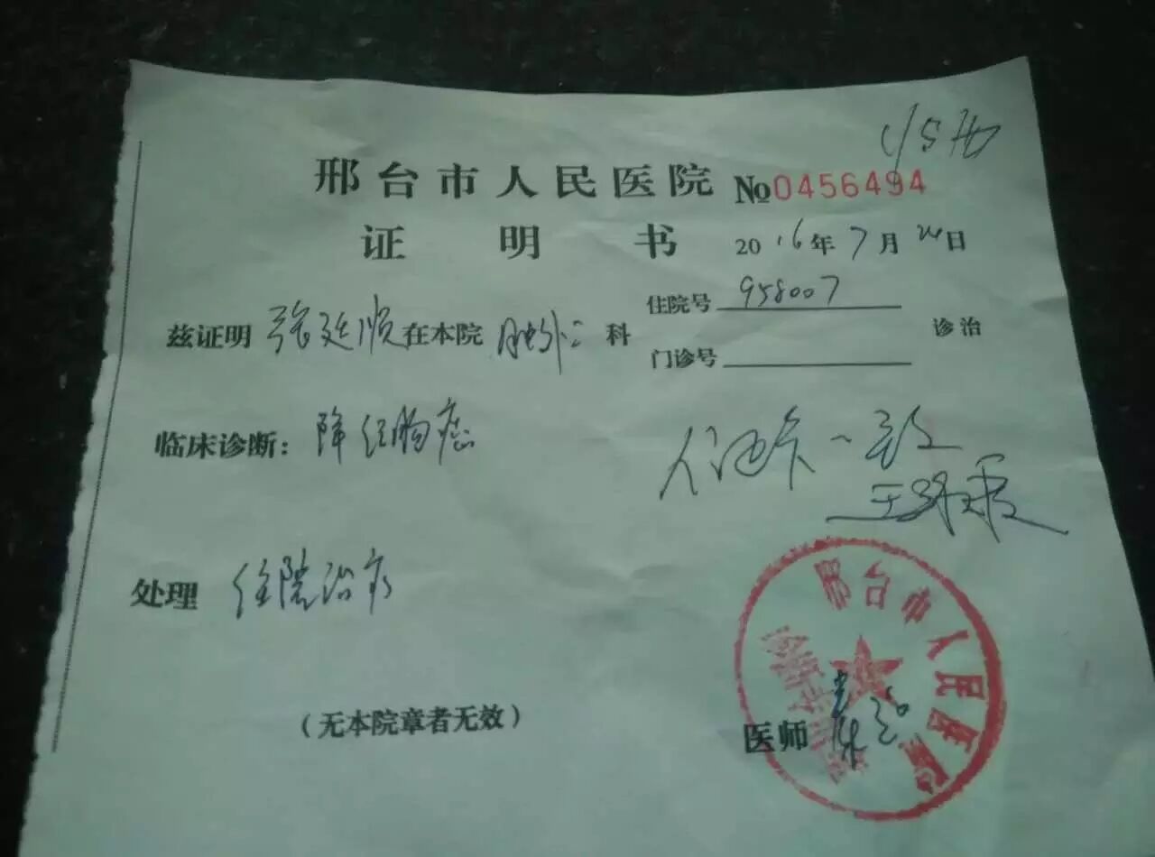 邢台市人民医院13号床爱父张廷顺(住院号958007)