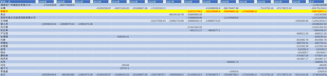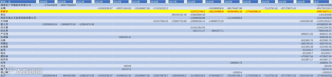 可以看到,拓维信息上市以来减持套现最多的是湖南广电,累计套现超11亿,公司实控人李新宇以超5亿的套现金额排第三。套现金额超6.5亿排第二的宋鹰,在拓维信息的招股书上显示其为实控人李新宇的一致行动人,这也意味着套现最多的或许还是实控人。